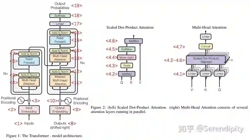 <13> 功能和<4>类似,唯一不同的一点在于Q,K,V的输入,<13>的Q的输入来自于Outputs 的token embedding,<13>的K,V来自于<7>的结果。