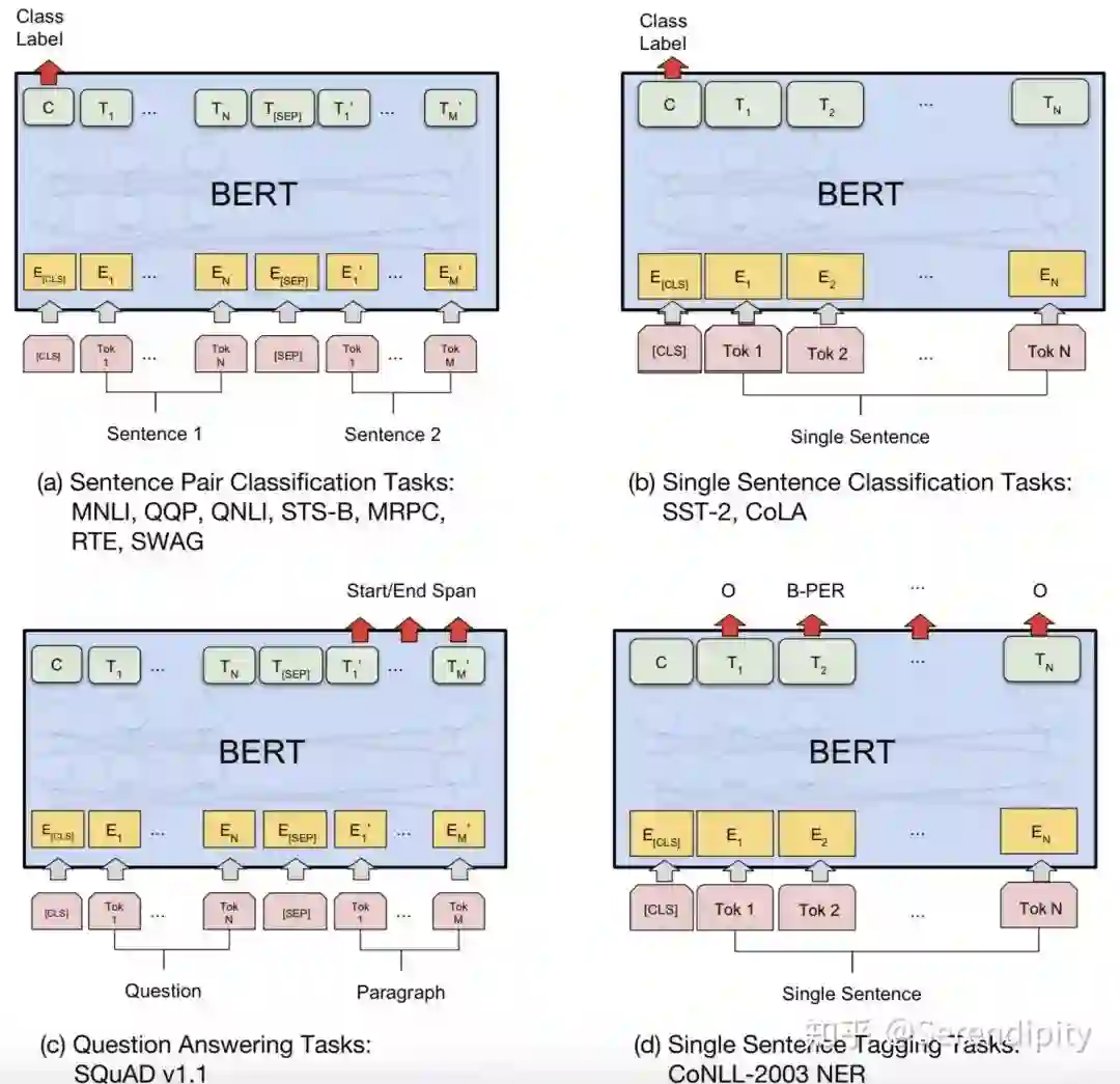 <3> bert在token序列之前加了一个特定的token“[cls]”,这个token对应的向量后续会用在分类任务上;如果是句子对的任务,那么两个句子间使用特定的token“[seq]”来分割。