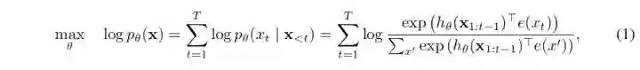 目前语言预训练模型的模式主要有2种,第一种是像gpt这种的auto-regressive模型,每个时刻都依据之前所有时刻的token来预测下一个token,auto-regressive的loss的定义如下: