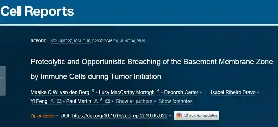 与癌症相关的炎症对癌症的发生和发展有显著的影响。炎症细胞应该杀死正在进展的癌细胞,但事实反而倾向于滋养并促进癌症进展。已有研究表明炎症细胞(白细胞)是促使肿瘤从早期阶段进展为恶性肿瘤的关键因素。但目前尚不清楚它们是如何通过皮肤癌好发的上皮组织与炎症细胞发生组织之间的外基质屏障层来接近癌细胞的。