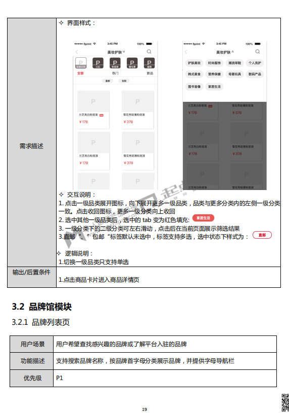 原型图:各页面的线框图、基本的交互形式、文本注释