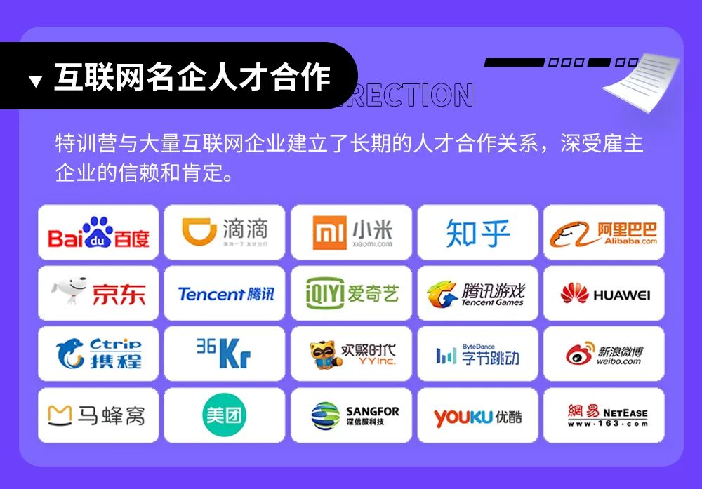 特点:花费相应的金钱+时间进行系统的训练,一方面可以输出一份完整的求职作品,提升入职成功率;另一方面也可以让自己入职后快速进入工作状态,顺利度过转正期、晋升期。