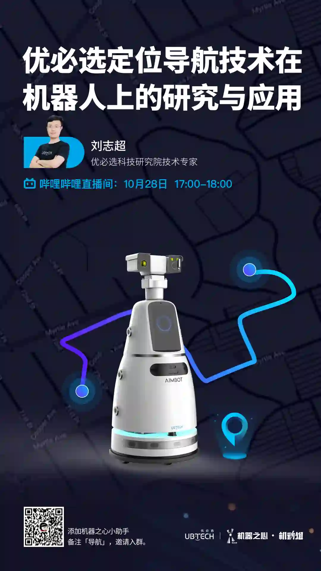 ,机器之心邀请到优必选研究院技术专家刘志超带来直播分享,主要介绍优必选研究院定位导航技术近两年的技术及其应用案例,以及对未来方向的探讨。详情如下: