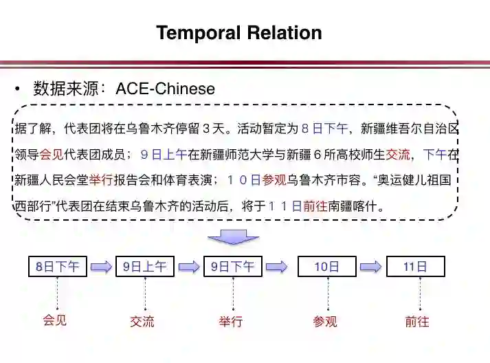 另外一个就是事件关系抽取,事件关系给大家介绍四类:共指,时序,因果和子事件。