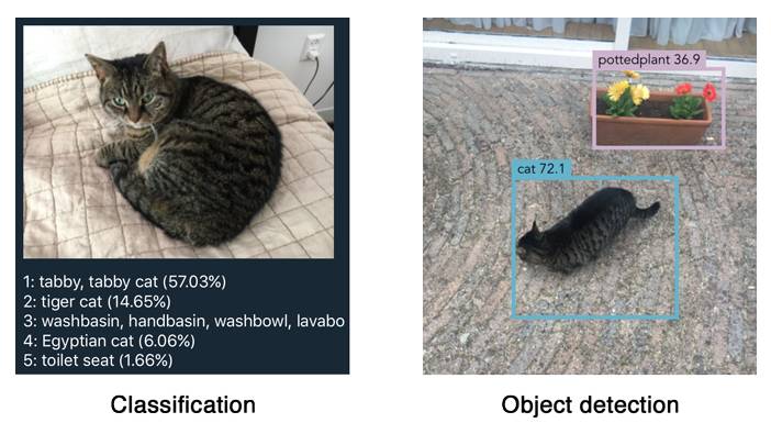 Detection is a more complex problem than classification, which can also recognize objects but doesn’t tell you exactly where the object is located in the image — and it won’t work for images that contain more than one object.