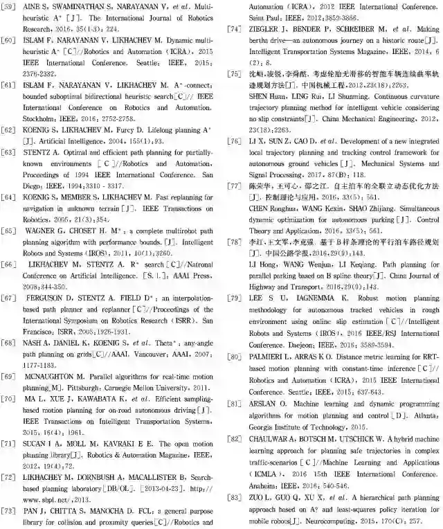厚势按:本文为同济大学汽车学院余卓平教授、李奕姗博士、熊璐教授发表在 2017 年 8 月出版的《同济大学学报(自然科学版)》上关于无人驾驶汽车运动规划算法的综述论文。作为无人驾驶汽车感知、决策与规划、执行的三大组成部分之一,运动规划环节极为重要!