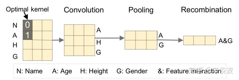 通过使用CNN模块,先是卷积层提取局部特征的连接,如高度等于3能够提取相邻3个field的特征的关系,因此具有高阶特征的交叉能力。然后又通过池化层提取global信息,确保特征的输入顺序对结果的影响能够被捕捉到。