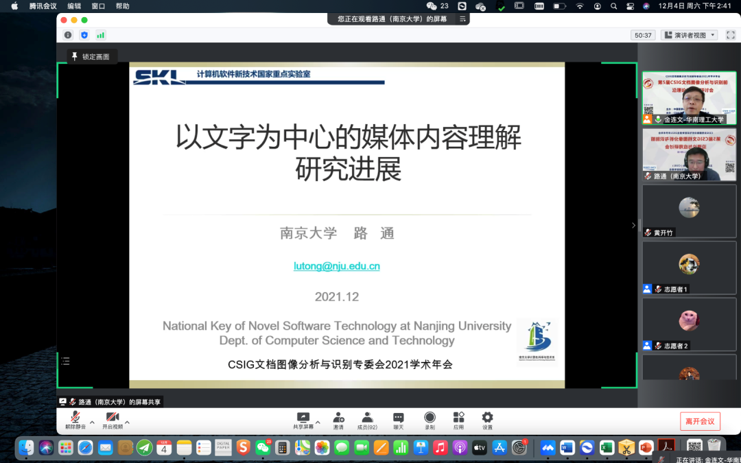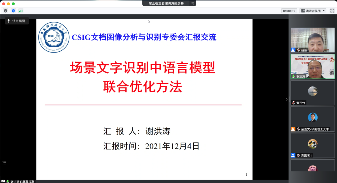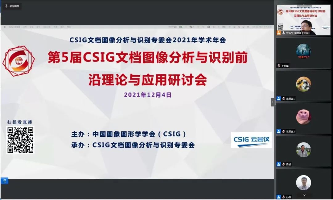 12月4日下午,由中国图象图形学学会主办,文档图像分析与识别专委会承办的“第五届CSIG文档图像分析与识别前沿理论与应用研讨会暨中国图象图形学学会文档图像分析与识别专委会2021年学术年会”以线上形式成功召开。