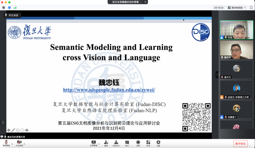 【动态】第五期CSIG文档图像分析与识别专业委员会学术微沙龙成功在线举办