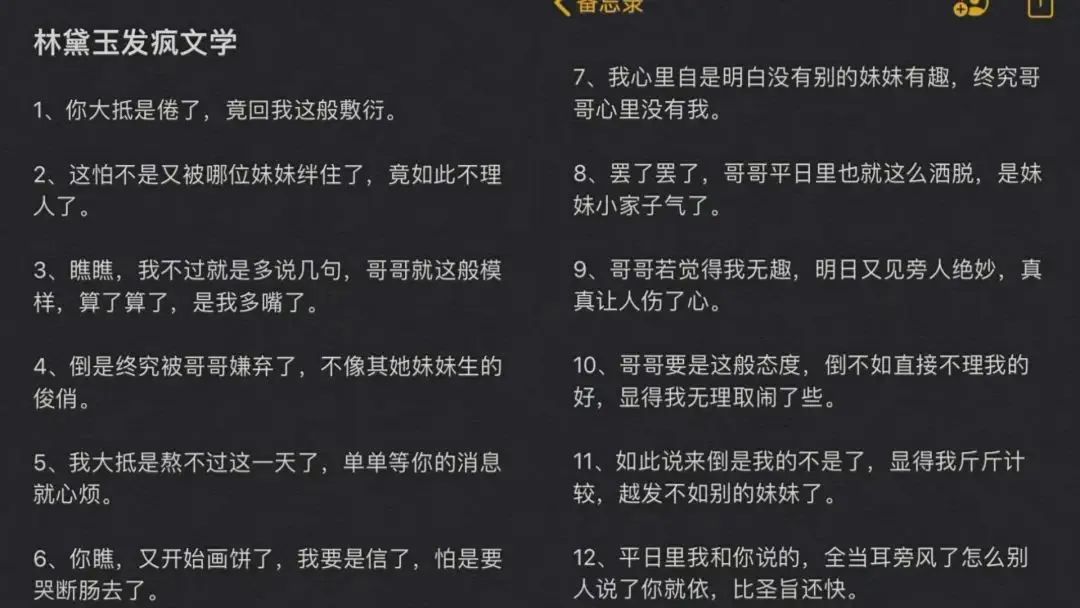 看到这句话想起林黛玉的朋友,最近应该也在被林黛玉发疯文学洗脑。