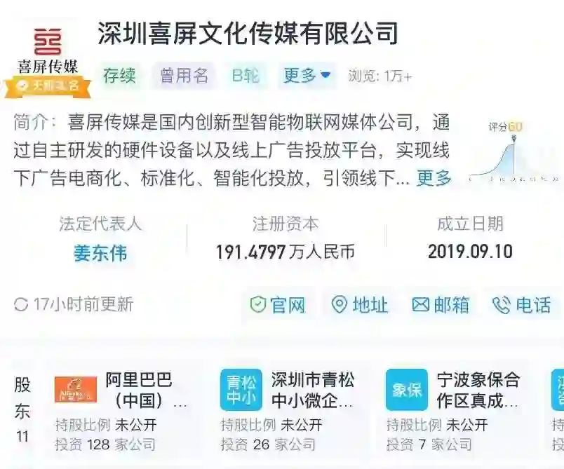 2022年3月10日,专注社区电梯广告的喜屏传媒,完成B轮融资,投资方为阿里巴巴。喜屏传媒成立于2019年,截至目前已完成多轮融资,过往投资方包括:青松基金、嘉实投资、德同资本、真成投资以及广州日报等等。