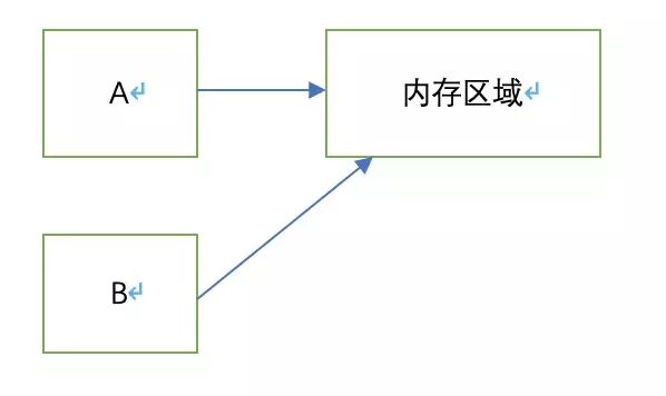 现在B和A指向了同一块内存区域,即为浅拷贝。