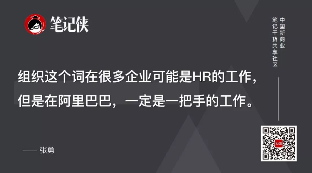 阿里巴巴CEO逍遥子说过,组织这个词在很多企业可能是HR的工作,但是在阿里巴巴,一定是一把手的工作。领导者对组织意识形态的认知,对它的重视程度,往往会起决定作用。