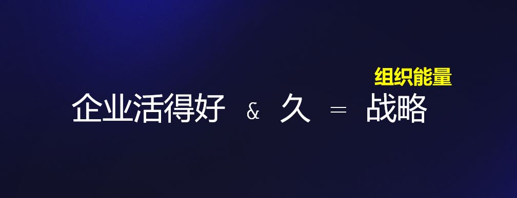 我们认为能够做得好和活得久的关键是正确的战略和组织能量。而且组织能量对战略是指数级的关系,希望每个企业都能获得自我成长的动力和动能。