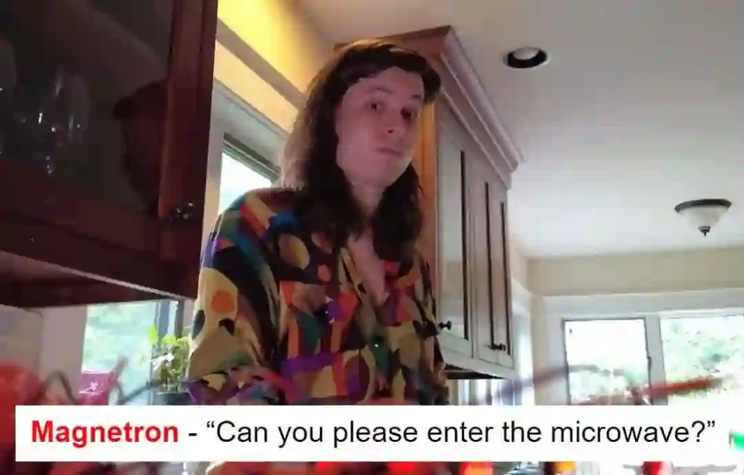 「磁控管」看似天真地问:「你能走进微波炉箱里来么?」
