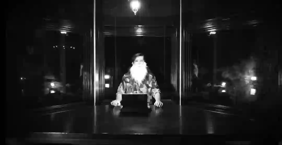 「在我的设想里,我那位朋友得是一位来自1900年的英国绅士。他参加过一战,是个老兵。他移过民...是个诗人。还有,噢,当然了,他玩儿《星际争霸》玩的特好。」