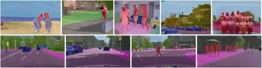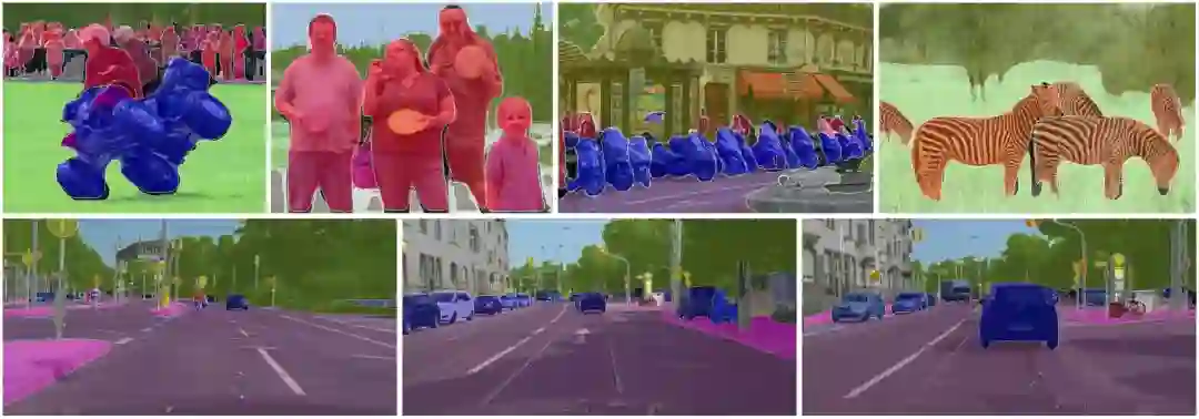 图 6:使用单个 ResNet-101-FPN 网络在 COCO 数据集(上)和 Cityscapes 数据集(下)上的更多全景 FPN 结果。