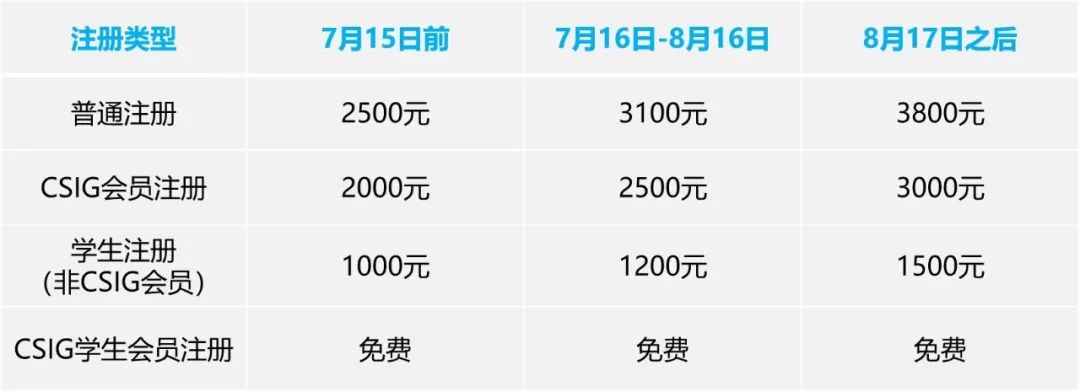*注册CSIG会员说明:请登录会员系统http://membership.csig.org.cn注册,普通会员会费200元/年,学生会员会费50元(一次性)
