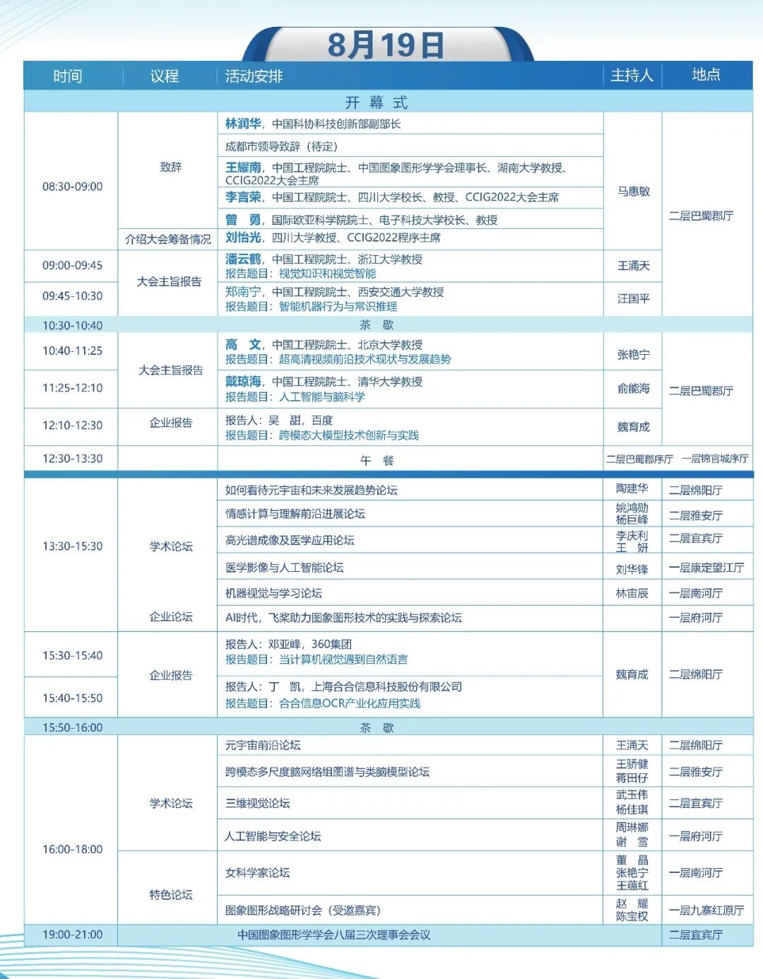 2022中国图象图形大会(CCIG 2022)将于2022年8月19-21日在成都盛大举办,大会以“图象视界,形智未来”为主题,由中国科学技术协会作为指导单位、中国图象图形学学会主办、四川大学承办、电子科技大学协办、成都市博览局、成都市科学技术协会、成都市科技局支持。