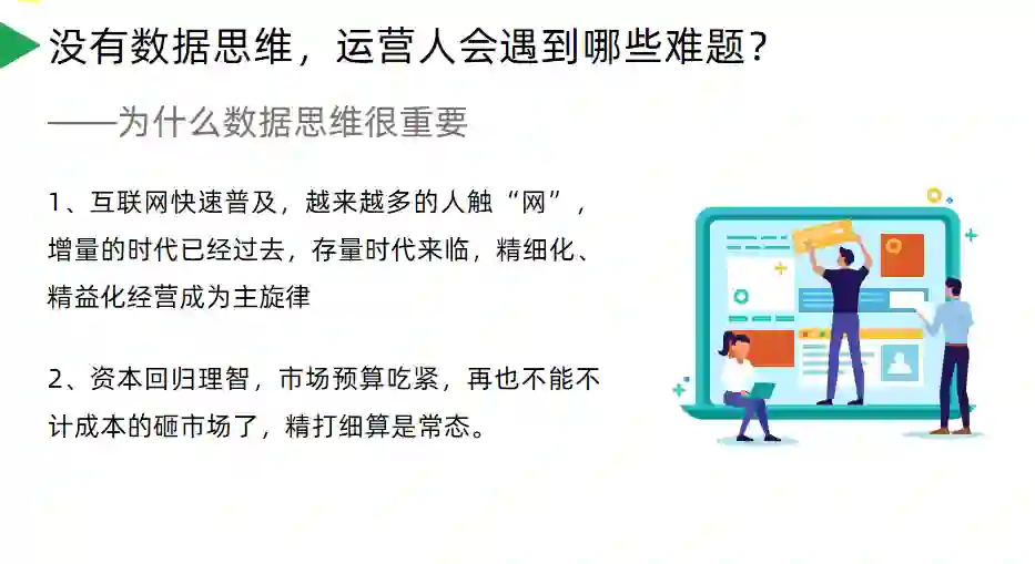 现在数据思维已经成为衡量运营人实力的核心指标,必须要建立起数据思维,才能不被时代淘汰,保证职业发展朝着好的方向前进。