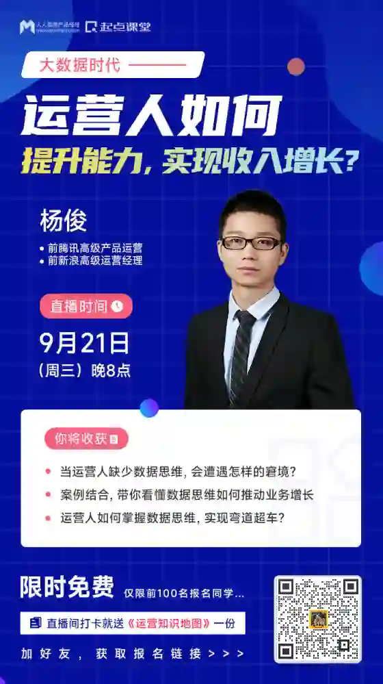 今晚8点直播公开课上,从事互联网运营工作16年的杨俊老师,将为你进行详细讲解!