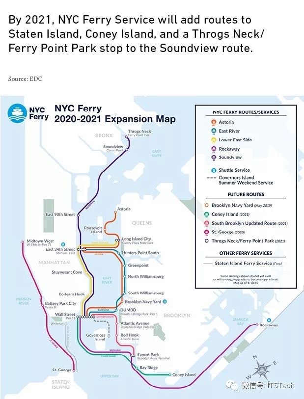 的连接 纽约市将扩建纽约渡轮航线,于2017年启动,到 2023年每年为1100万乘客提供服务,高于今天的410万人,前往斯塔滕岛和康尼岛的路线以及Throgs Neck / Ferry Point公园都停靠在Soundview路线上。虽然纽约市渡轮已经与地铁和公共汽车相同,但未来,纽约市将寻求将其与其他公共交通系统相结合,并探索替代燃料的使用和渡轮的电气化,因为这些技术将继续发展并且在规模上变得更加实惠。