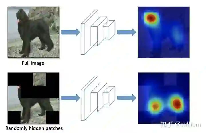 Hide and Seek :将图像分割成一个由 SxS 图像补丁组成的网格,根据概率设置随机隐藏一些补丁,从而让模型学习整个对象的样子,而不是单独一块,比如不单独依赖动物的脸做识别。