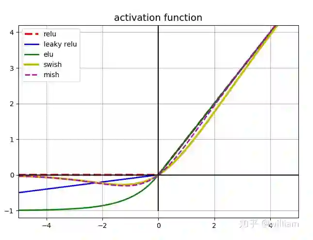 在 YOLO V5中,中间/隐藏层使用了 Leaky ReLU 激活函数,最后的检测层使用了 Sigmoid 形激活函数。而YOLO V4使用Mish激活函数。