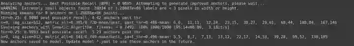 但是对于你的自定义数据集来说,由于目标识别框架往往需要缩放原始图片尺寸,并且数据集中目标对象的大小可能也与COCO数据集不同,因此YOLO V5会重新自动学习锚定框的尺寸。