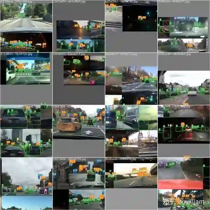下图是我在训练BDD100K数据时的数据增强结果。我会在我的下篇文章:YOLO V5 Transfer learning 中展示YOLO V5对象检测框架的实测效果。