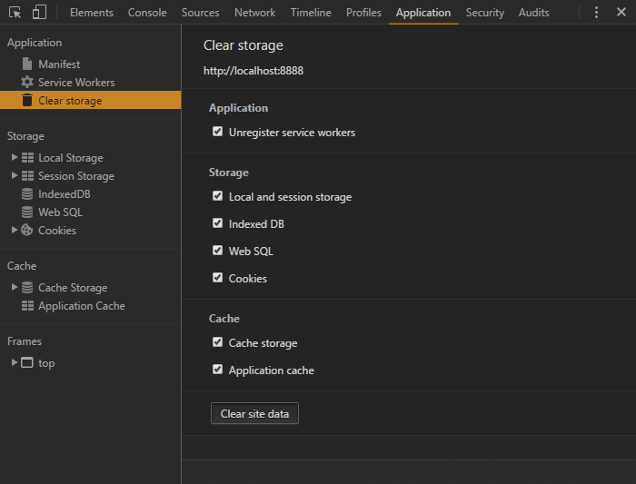 在开发阶段,你应该考虑以Incognito window方式运行应用,因为这样的话,在关闭标签页的时候,缓存文件将不会保留。