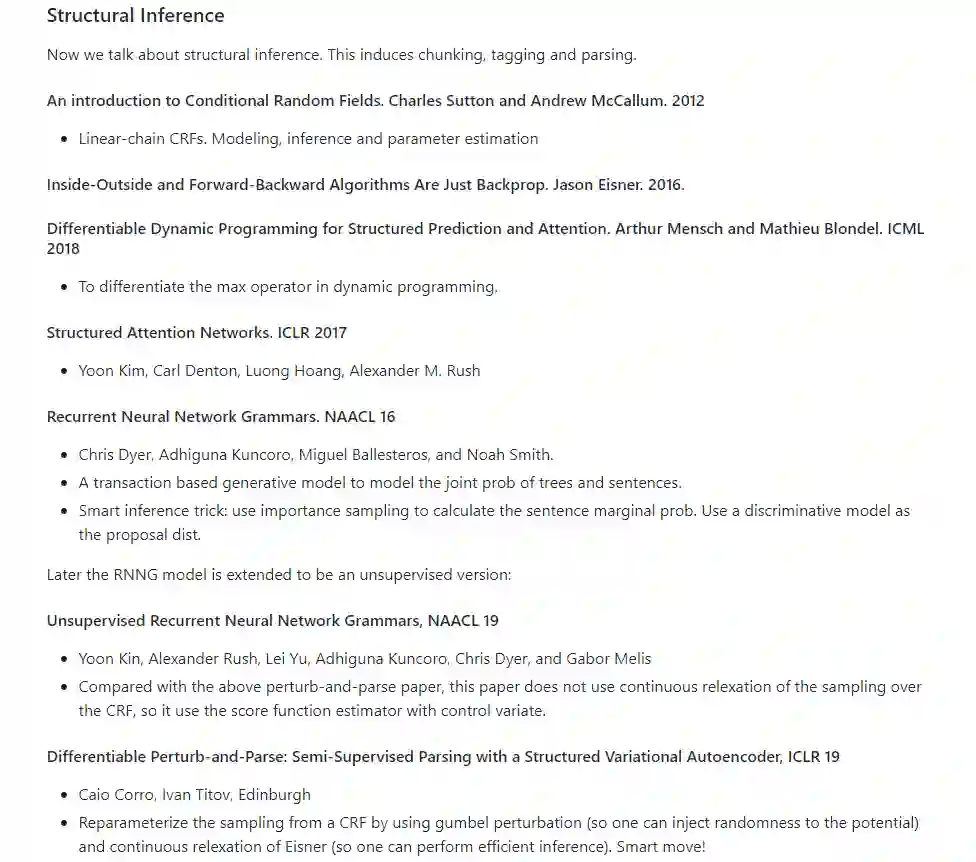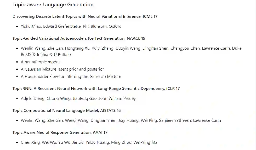 【导读】本文介绍了自然语言处理的深度生成模型,资源,会议地图和论文清单。在谈论深度生成模型时,通常会提到三个模型族:变分自编码器(VAE),生成对抗网络(GAN)和归一化流(Normalizing Flows)。在这三个模型家族中,我们将更加关注VAE,因为它们更有效。GAN是否真的有效仍是一个悬而未决的问题。GAN的有效性更像是鉴别器的正则化,而不是“生成”部分。NLP的VAE模型涉及许多离散结构。对这些结构进行推断是棘手且明智的。