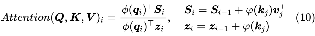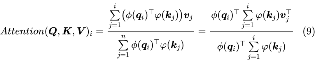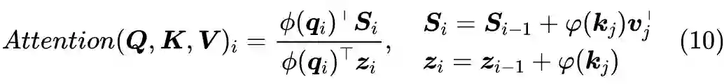 相比之下,本文介绍的几种 Linear Attention 都能做到这一点。以式(3)和式(4)为例,如果要 Mask 掉未来信息,那么只需要把求和