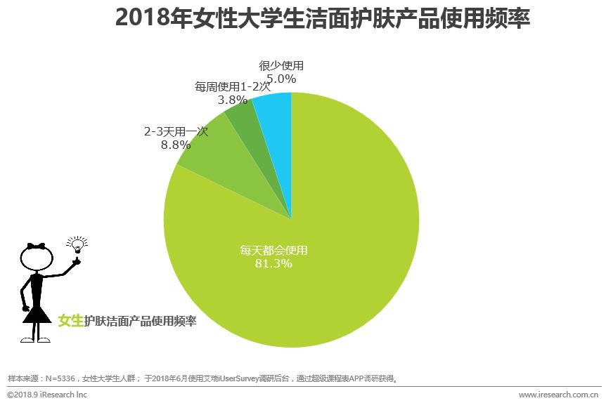 19.7%的女大学生每天都会使用彩妆产品,对于年轻肤质的大学生群体来说,以口红打造好气色是最为便捷有效的化妆方式。