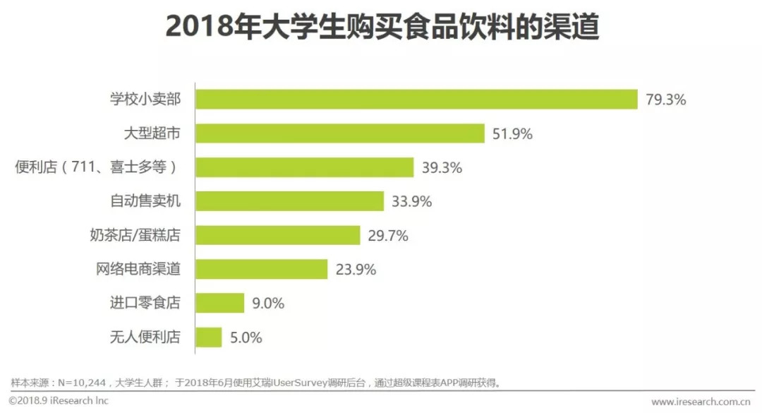 经常用线上支付的比例超过95%;食品饮料就近购买,手机护肤等个人用品网上购买和线下购买比例约为6:4;90%的大学生经常使用淘宝。
