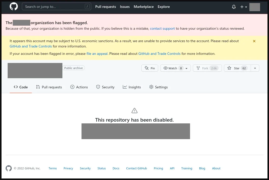 但同时,GitHub也封禁了数十个与受制裁实体无关的个人开发者账户。