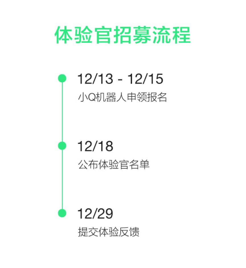 同时,成为10名幸运儿的产品体验官,还将有机会可与小 Q 机器人的产品经理直接沟通,帮助产品更好的优化改进,期待和你一起打造更好的产品。