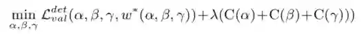 其中,α,β,γ分别代表了backbone, neck, and head的网络结构。C(α) 表示 backbone的FLOPs。λ 是平衡准确性和算力的系统。