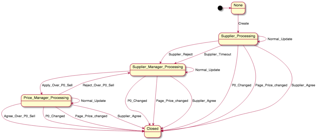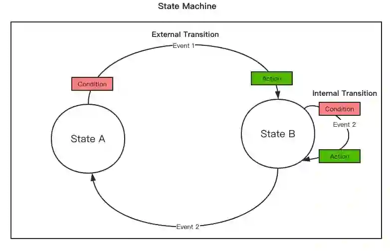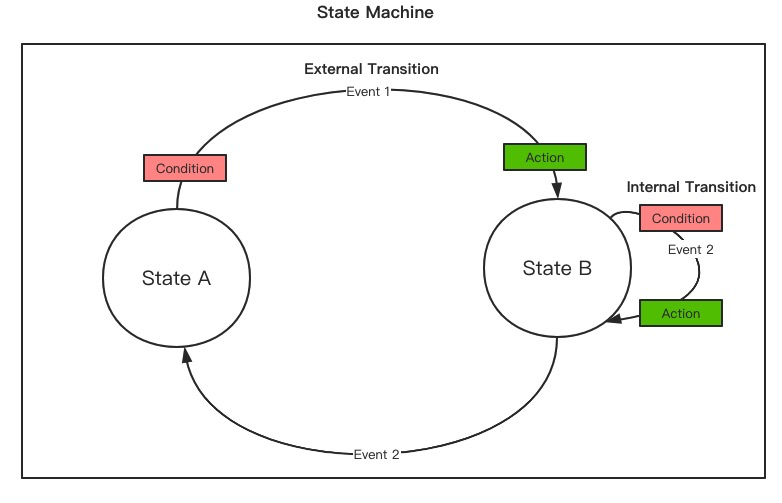 External Transition:外部流转,两个不同状态之间的流转