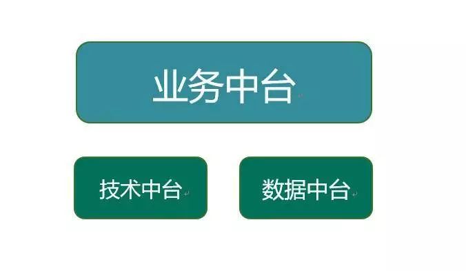 这三个中台之间的关系如下图所示,技术中台和数据中并列排在下面,而业务中台排在这两者之上: