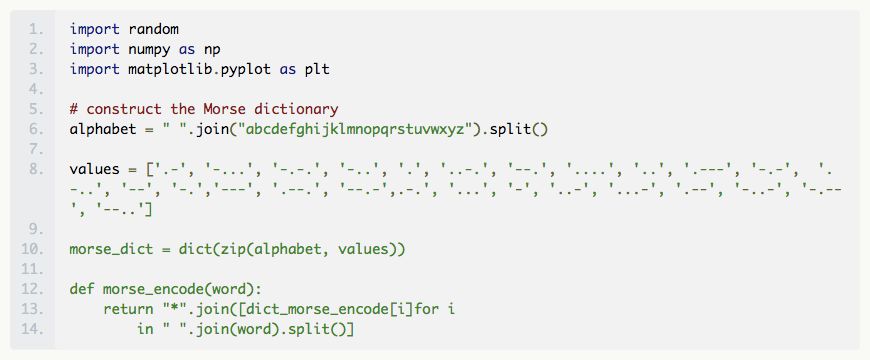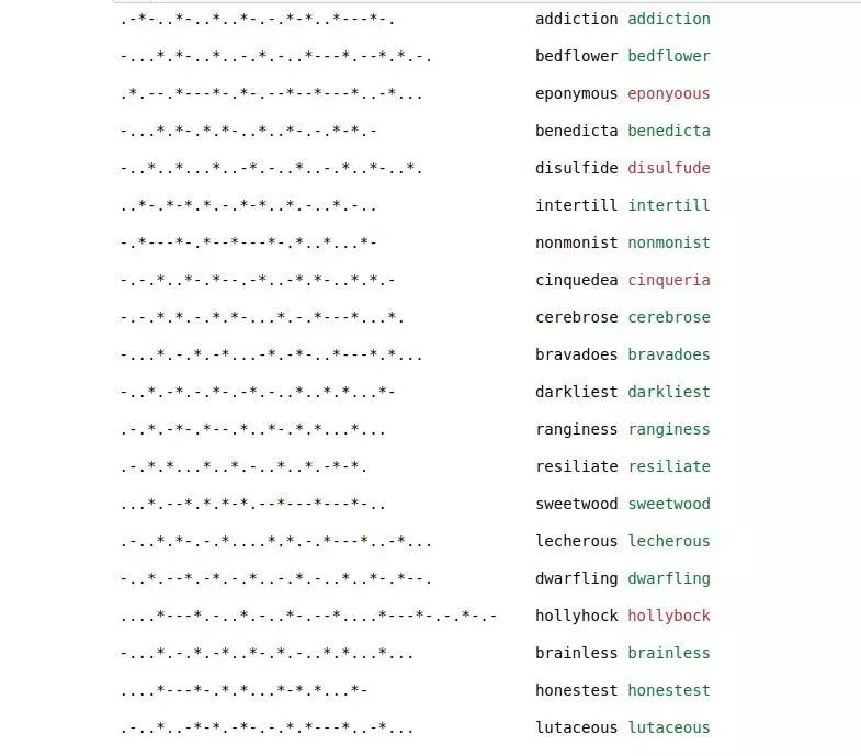 我们开始数据准备工作,构建一个函数,将所输入的英文单词编码为它的 Morse 电码并输出。