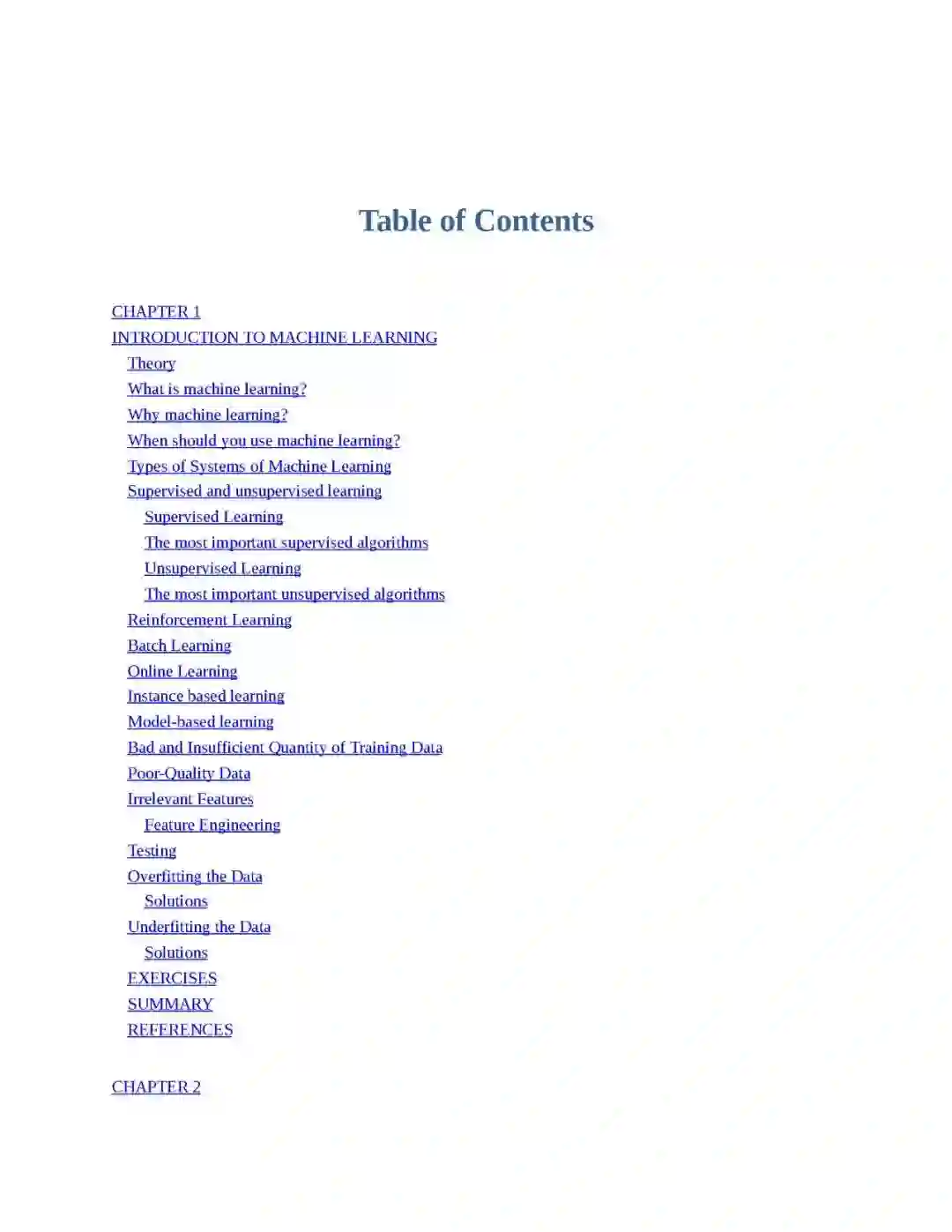 这本书是为任何想学习如何开发机器学习系统的人准备的。我们将从理论和实践两方面涵盖关于机器学习算法的最重要概念,并将使用Python编程语言中的Scikit-learn库实现许多机器学习算法。在第一章中,您将学习机器学习最重要的概念,在下一章中,您将主要学习分类。在最后一章中,你将学习如何训练你的模型。我假定你已经了解了编程的基础知识。
