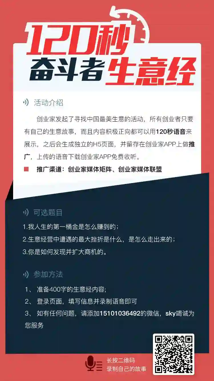 ↓↓点击阅读原文报名,奋斗者们的120秒,火速收听!