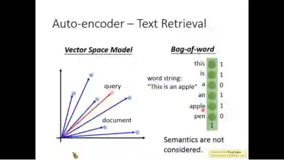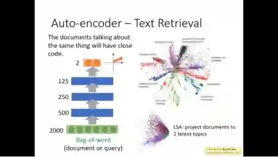 Auto-encoder可以应用在text retrieve中,把每个document统统用一个vector来描述它,计算query和每个document的cos角度