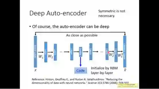 当这个结构变得很深,就变成了deep auto-encoder,encoder和decoder的系数不一定是对称的