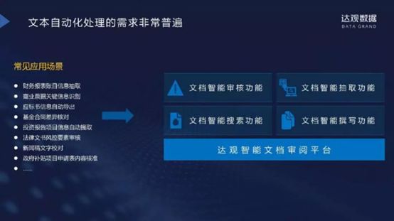 应用场景一般就是客户提供的文档,包括财务报表、基金合同等等。文档处理的核心是自然语言处理,特别是抽取技术。我们也需要考虑实际应用,结合一些其他的工程技术,比如外部系统、分布式技术、数据库技术等等。