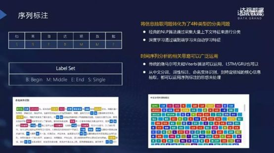 上图还可以看到,在分词之外,命名实体我们用另外一个标签集。我们做词性分析可能用不同的标签集。可以看到,不同的标签集可以用来做不同的事情。所以无论是传统的机器学习,还是深度学习,我们都是在解决一个叫做“序列标注”的问题。所以标签集和标注方式都是基础的、几乎是一样的。有什么样不同?后文会具体讨论。