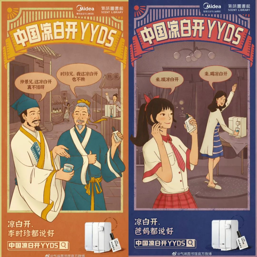 回忆其实是一个很简单的东西,它可以是铝壶烧开后在厨房放凉的水,也可以是上学之前妈妈在书包里放好的大白兔奶糖。不得不说,对于一些80、90甚至是70后的消费者来说,如此大打情怀牌,引起消费者共情的打法确实管用。气味图书馆的创始人娄楠石表示,“凉白开的本质,是理解和诠释中国,我们总结为 IP 气味化。”
