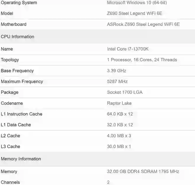英特尔的 Raptor Lake 是 Alder Lake 的优化版本,基于相同的 Intel 7 工艺制造,有着类似的 P-Core 和 E-Core 设计,将会在今年内发布。继酷睿 i9-13900K 和酷睿 i5-13600K 相继曝光后,酷睿 i7-13700K 也出现在了 Geekbench 5 的数据库中。