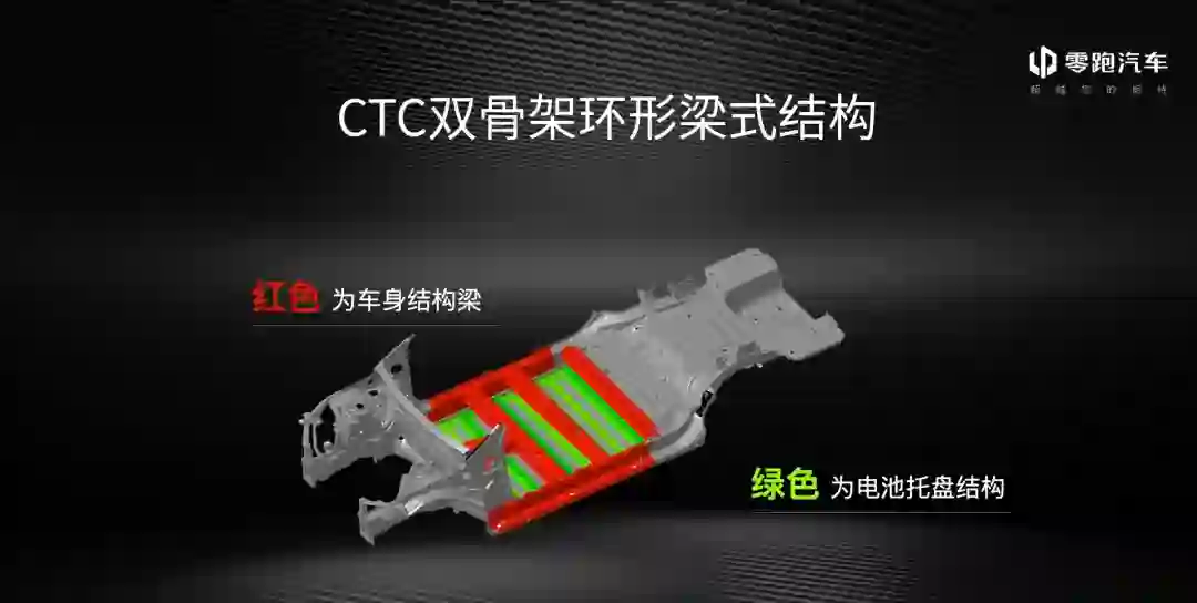 大多数人的关注点都在他们的第一款中大型轿车 C01 上。不过,零跑这次发布的重点并不是 C01 本身,而是这款车上首次运用的一种新型结构设计——电池底盘一体化。